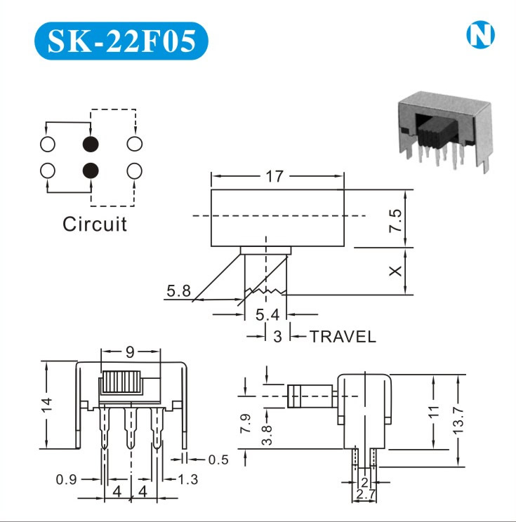 SK-22F05 詳細(xì)資料 產(chǎn)品說(shuō)明: 技術(shù)指標(biāo): 使用溫度范圍 -20~+70℃ 耐壓 AC250V(50Hz)/min 額定負(fù)荷 DC 50V 0.5A 動(dòng)作力 250±100gf 接觸電阻 ≤0.05Ω 機(jī)械壽命 10000次 絕緣電阻 ≥100MΩ