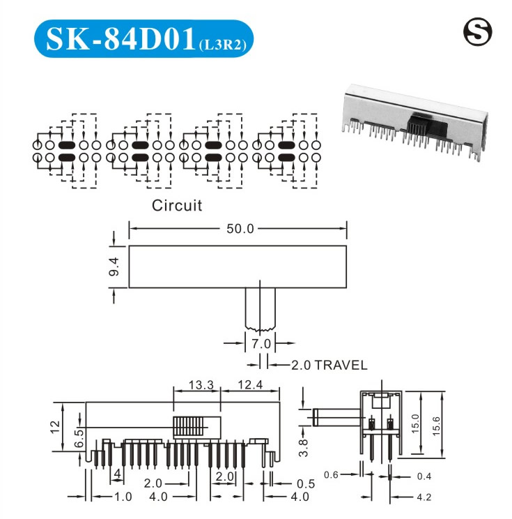 SK-84D01 詳細資料 產(chǎn)品說明: 技術(shù)指標(biāo): 使用溫度范圍 -20~+70℃ 耐壓 AC250V(50Hz)/min 額定負(fù)荷 DC 50V 0.5A 動作力 250±100gf 接觸電阻 ≤0.05Ω 機械壽命 10000次 絕緣電阻 ≥100MΩ