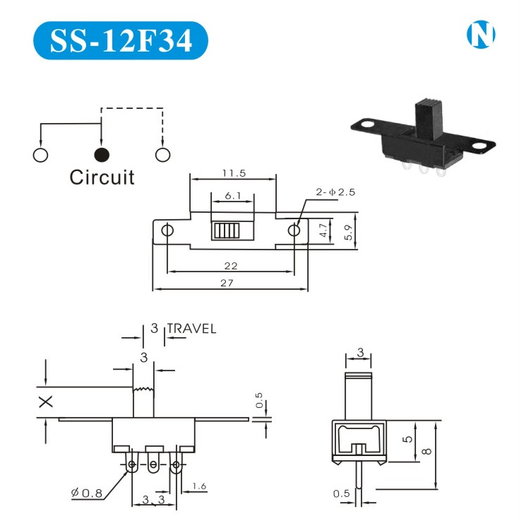 SS-12F34 詳細資料 產(chǎn)品說明: 技術(shù)指標(biāo): 使用溫度范圍 -20~+70℃ 耐壓 AC250V(50Hz)/min 額定負荷 DC 50V 0.5A 動作力 250±100gf 接觸電阻 ≤0.05Ω 機械壽命 10000次 絕緣電阻 ≥100MΩ