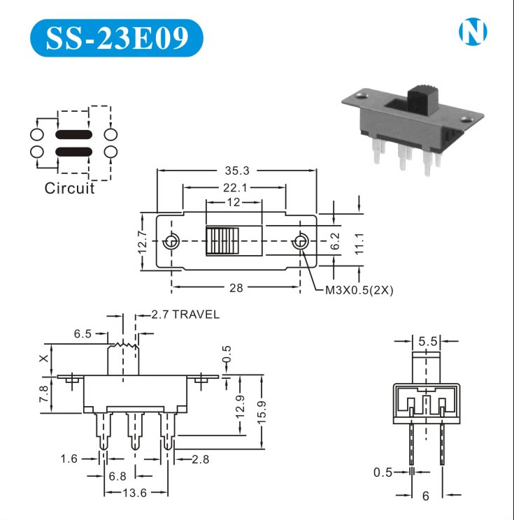 SS-23E09 詳細資料 產(chǎn)品說明: 技術(shù)指標: 使用溫度范圍 -20~+70℃ 耐壓 AC250V(50Hz)/min 額定負荷 DC 50V 0.5A 動作力 250±100gf 接觸電阻 ≤0.05Ω 機械壽命 10000次 絕緣電阻 ≥100MΩ