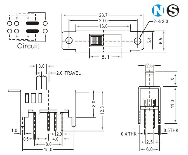SS-23D04 詳細(xì)資料 產(chǎn)品說(shuō)明: 技術(shù)指標(biāo): 使用溫度范圍 -20~+70℃ 耐壓 AC250V(50Hz)/min 額定負(fù)荷 DC 50V 0.5A 動(dòng)作力 250±100gf 接觸電阻 ≤0.05Ω 機(jī)械壽命 10000次 絕緣電阻 ≥100MΩ