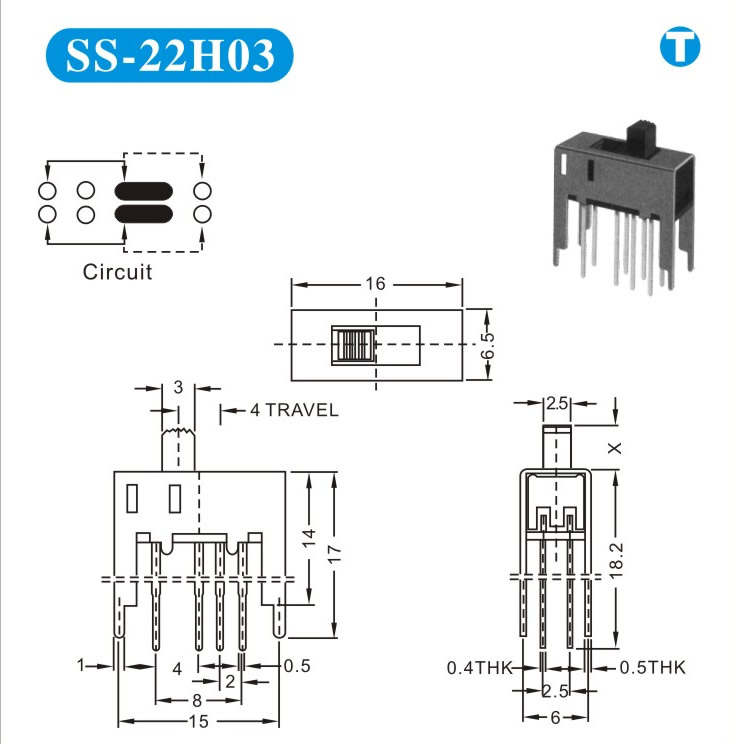 SS-22H03 詳細資料 產(chǎn)品說明: 技術指標: 使用溫度范圍 -20~+70℃ 耐壓 AC250V(50Hz)/min 額定負荷 DC 50V 0.5A 動作力 250±100gf 接觸電阻 ≤0.05Ω 機械壽命 10000次 絕緣電阻 ≥100MΩ