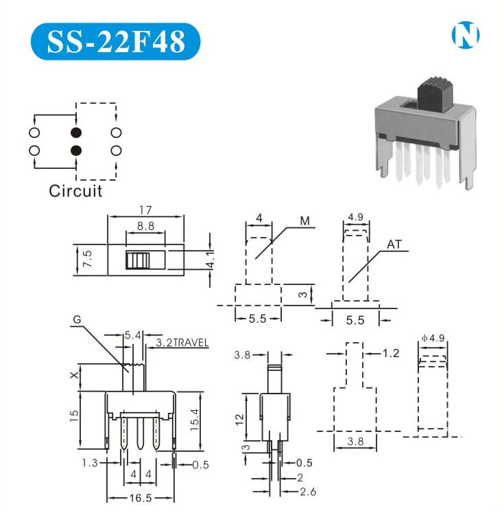 SS-22F48 詳細資料 產(chǎn)品說明: 技術(shù)指標: 使用溫度范圍 -20~+70℃ 耐壓 AC250V(50Hz)/min 額定負荷 DC 50V 0.5A 動作力 250±100gf 接觸電阻 ≤0.05Ω 機械壽命 10000次 絕緣電阻 ≥100MΩ