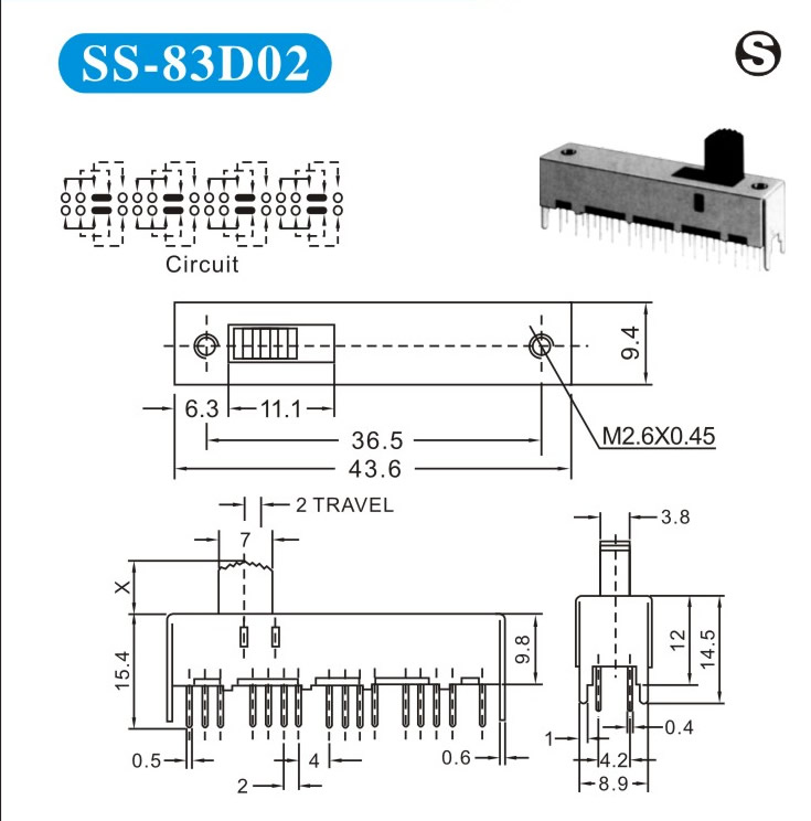 SS-83D02 詳細資料 產(chǎn)品說明: 技術(shù)指標: 使用溫度范圍 -20~+70℃ 耐壓 AC250V(50Hz)/min 額定負荷 DC 50V 0.5A 動作力 250±100gf 接觸電阻 ≤0.05Ω 機械壽命 10000次 絕緣電阻 ≥100MΩ