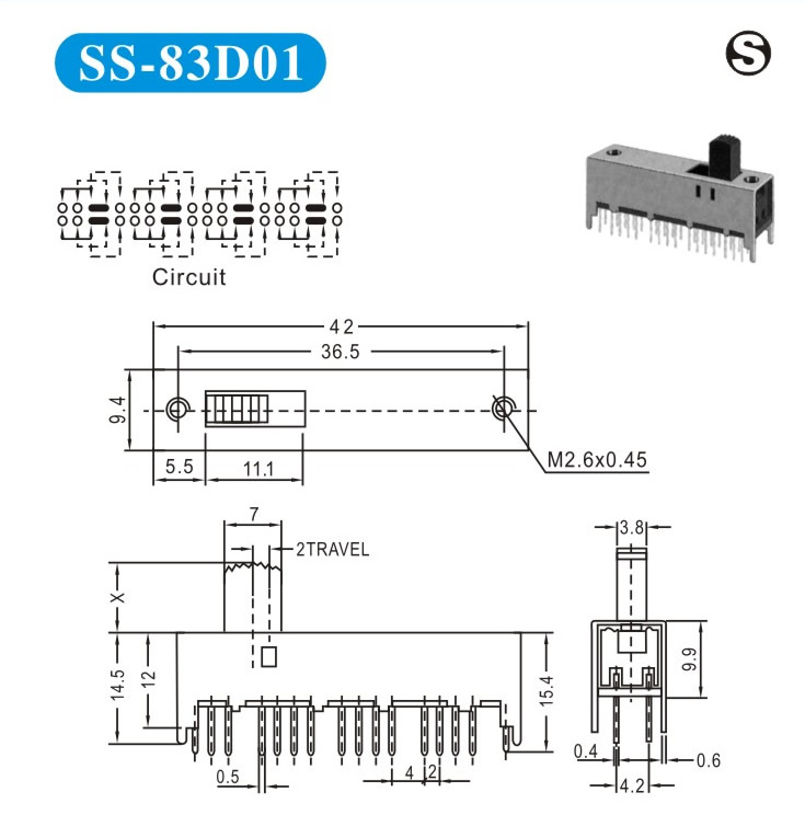 SS-83D01 詳細資料 產(chǎn)品說明: 技術指標: 使用溫度范圍 -20~+70℃ 耐壓 AC250V(50Hz)/min 額定負荷 DC 50V 0.5A 動作力 250±100gf 接觸電阻 ≤0.05Ω 機械壽命 10000次 絕緣電阻 ≥100MΩ