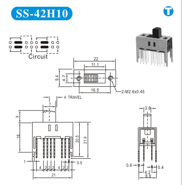 SS-42H10 詳細(xì)資料 產(chǎn)品說明: 技術(shù)指標(biāo): 使用溫度范圍 -20~+70℃ 耐壓 AC250V(50Hz)/min 額定負(fù)荷 DC 50V 0.5A 動作力 250±100gf 接觸電阻 ≤0.05Ω 機(jī)械壽命 10000次 絕緣電阻 ≥100MΩ
