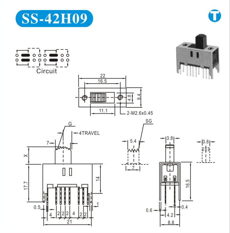SS-42H09 詳細資料 產(chǎn)品說明: 技術(shù)指標: 使用溫度范圍 -20~+70℃ 耐壓 AC250V(50Hz)/min 額定負荷 DC 50V 0.5A 動作力 250±100gf 接觸電阻 ≤0.05Ω 機械壽命 10000次 絕緣電阻 ≥100MΩ