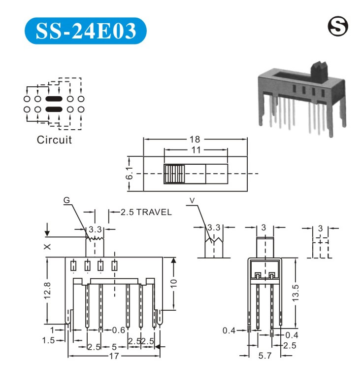 SS-24E03 詳細(xì)資料 產(chǎn)品說明: 技術(shù)指標(biāo): 使用溫度范圍 -20~+70℃ 耐壓 AC250V(50Hz)/min 額定負(fù)荷 DC 50V 0.5A 動(dòng)作力 250±100gf 接觸電阻 ≤0.05Ω 機(jī)械壽命 10000次 絕緣電阻 ≥100MΩ